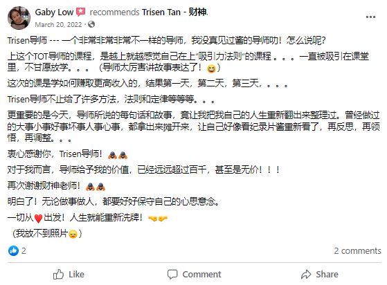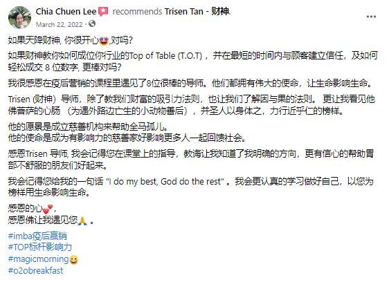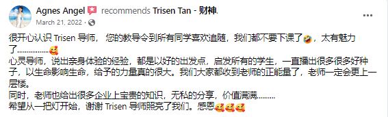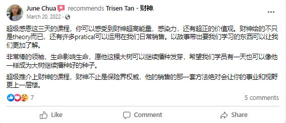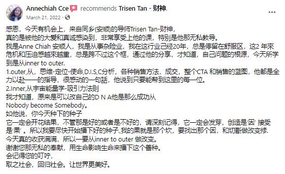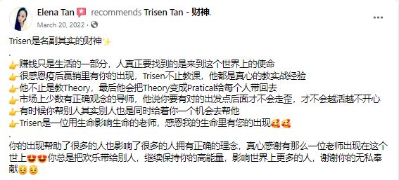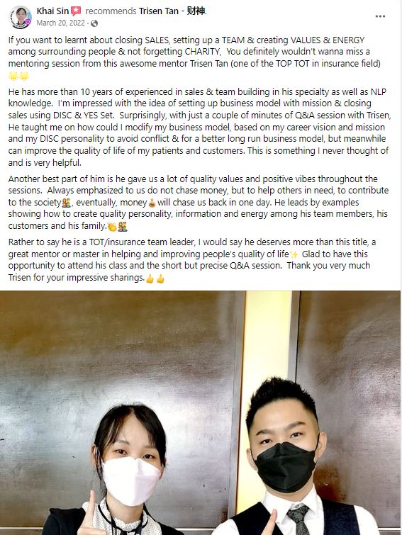想学习如何 close sales、建立团队并在周围的人中创造价值,千万不要错过 Trisen Tan(TOP TOT)这次 Mentoring 课程。